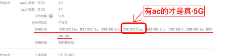 那么大一坨都不用看,都是老舊的標(biāo)準,速度慢。而802.11.ac是現(xiàn)在最強、最快的,有這個的才是真正的5g路由器,購買時認準802.11.ac就可以了。